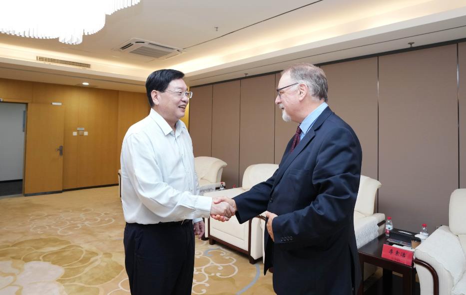 湯普森介紹了自己此行到河南尤其是參觀河南航投集團(tuán)航空制造產(chǎn)業(yè)園、河南航投航空培訓(xùn)中心的情形。他表示,盧森堡貨航是當(dāng)?shù)胤浅V匾钠髽I(yè),河南航投收購盧森堡貨航35%的股權(quán)在當(dāng)?shù)厥寝Z動(dòng)新聞,《編年史》自那時(shí)起就一直關(guān)注著雙方的合作。湯普森見證了鄭盧“空中絲綢之路”貨運(yùn)量不斷增長、客運(yùn)航線開通和文物雙向交流等重要突破,也曾參加了盧森堡首屆龍舟節(jié)并樂見河南航投和盧森堡貨航同時(shí)組隊(duì)參賽。隨后,湯普森就今年6月中豫航空集團(tuán)在盧森堡發(fā)債、與當(dāng)?shù)仄髽I(yè)簽約等,詳細(xì)了解了今后雙方的合作思路。湯普森希望中豫航空集團(tuán)與盧森堡當(dāng)?shù)仄髽I(yè)的合作不斷取得新成效,并通過體育文化交流等增進(jìn)兩地友誼。談及此次來豫,湯普森很開心,直言自己此行收獲頗豐,不僅了解了河南厚重的歷史文化底蘊(yùn),也在行程中感受到河南的開放和包容,將把所見所聞所感帶回去,講好豫盧共建“空中絲綢之路”的友好故事。