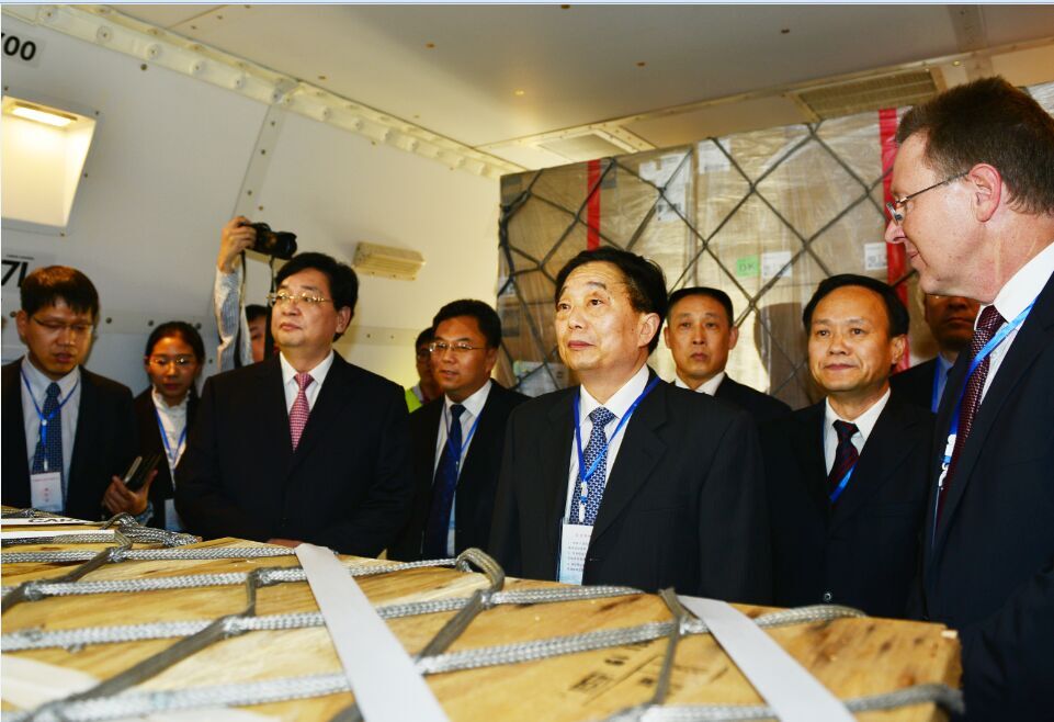 出席盧貨航45周年慶祝儀式的有河南省副省長李亞、省長助理安惠元、省政府副秘書長馬剛。河南航投董事長、黨委書記張明超,總經(jīng)理、副董事長、黨委副書記劉建葆,公司領(lǐng)導(dǎo)班子其他成員及相關(guān)業(yè)務(wù)負(fù)責(zé)人參加了慶祝儀式。適逢盧貨航2015年全球經(jīng)理人大會在鄭州召開,前來參會的50多位來自全球各個地區(qū)的區(qū)域經(jīng)理和重要部門負(fù)責(zé)人與中方人員一起,在鄭州機(jī)場見證了這一具有歷史意義的時刻。現(xiàn)場工作人員向機(jī)組人員獻(xiàn)上鮮花,隨后,雙方代表登機(jī)視察。